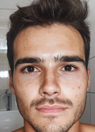 - -Old acne marks and uneven areas looking less harsh in side lighting